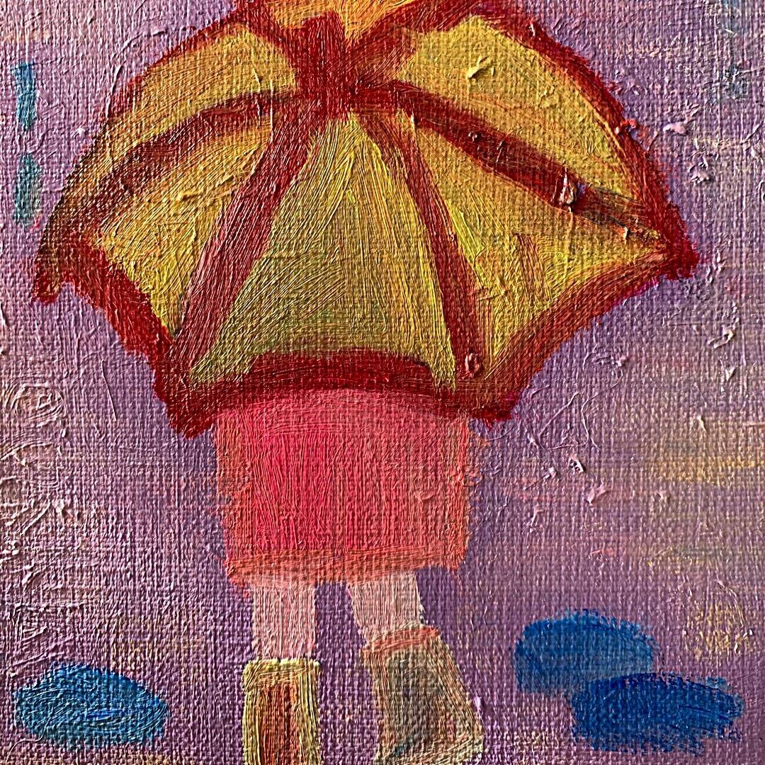 淡い紫の背景に、あたたかい色で描いたこの作品は、